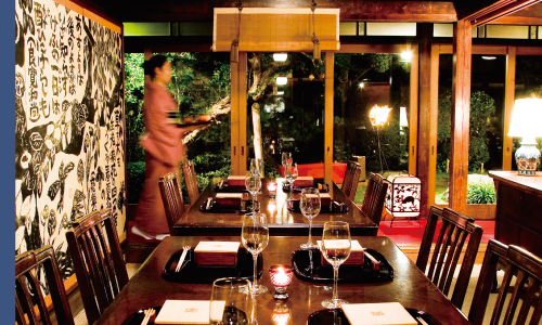 日本料理とは劇場だと思います。季節や行事に合わせ、室礼も、料理も、器も変えていく総合芸術です。 その座付作家が亭主、板前が演出家。役者はもちろん料理です。 さらに言えば盛付けは化粧で、器が衣装で、室礼が大道具。次へと進む会席は、劇で言えば、何場・何景というような物語です。